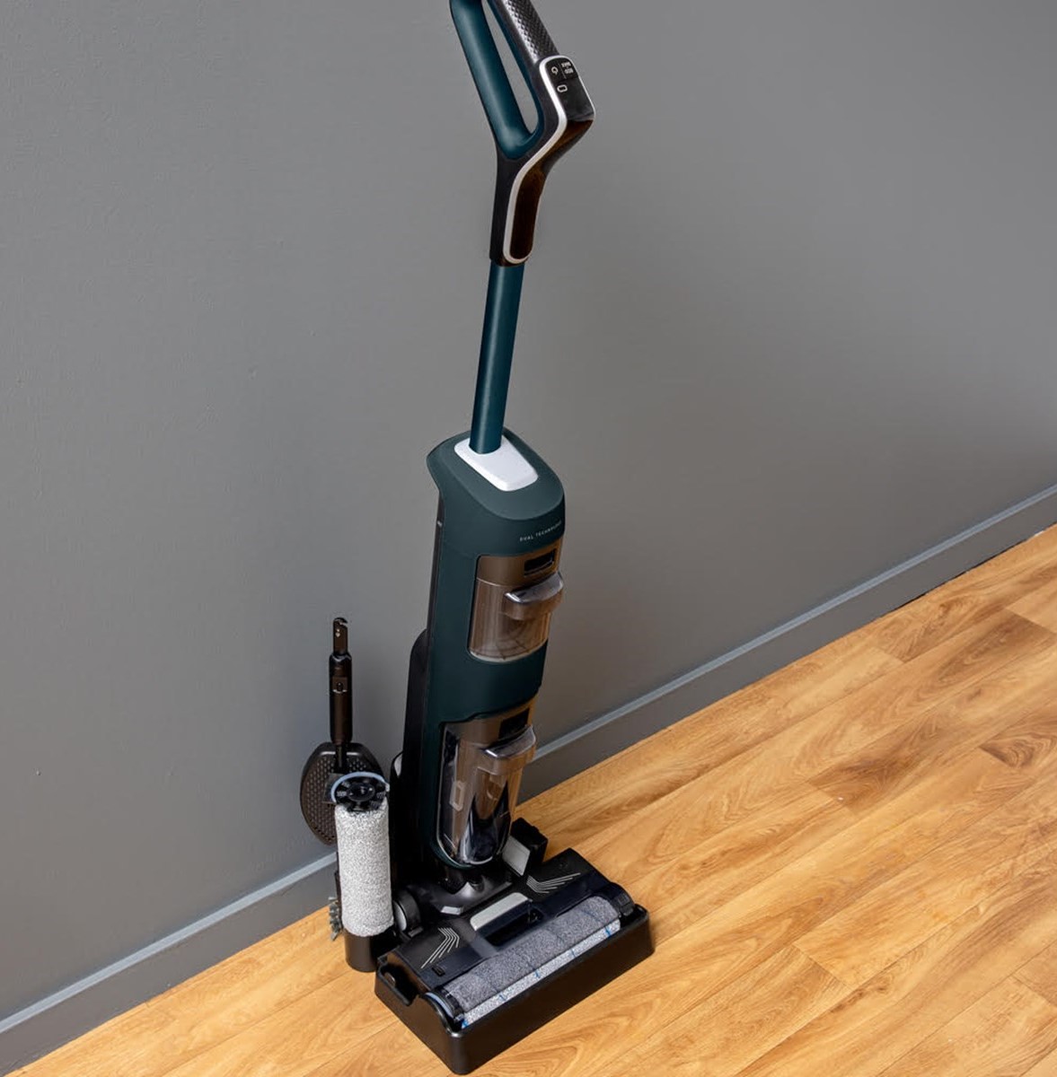 Et tydelig LED-display på håndtaket gir deg oversikt over batterinivå, rengjøringsmodus og vannivået i de to tankene (rent og skittent vann), så du alltid har kontroll på rengjøringsøkten uten gjetting.
